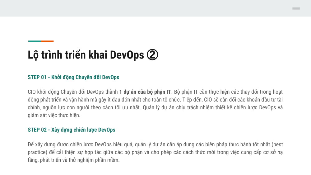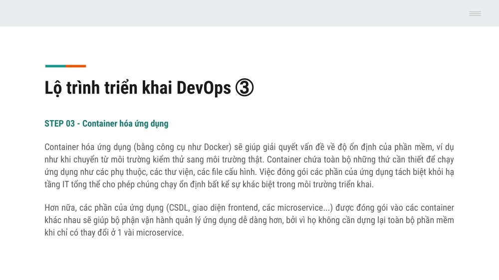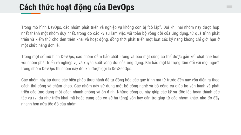 Thế giới đã/đang bước vào một thời kỳ đầy rẫy những biến động, bất định, phức tạp và mơ hồ (VUCA/TUNA). Trong môi trường đó, đặc trưng nổi lên là những đối thủ cạnh tranh linh hoạt, những yêu cầu ngày càng cao của người dùng, cùng với đó là những quy định nghiêm ngặt của nhà nước. Chính vì thế, ngành phần mềm nói chung, công ty ____ nói riêng, cần phải phát triển sản phẩm nhanh chóng, đưa sản phẩm ra thị trường còn cần nhanh chóng hơn nữa mà quan trọng hơn cả là vẫn phải đảm bảo các yêu cầu về chất lượng & bảo mật.